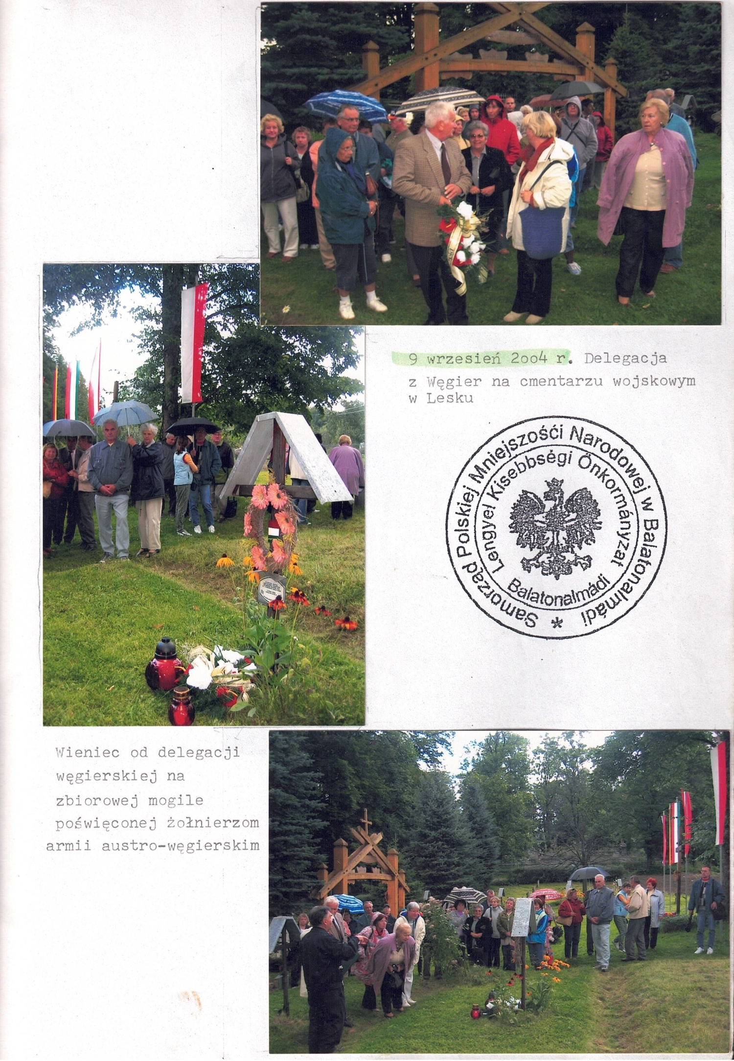 Am 9. September 2004 besuchte eine offizielle Delegation aus Ungarn den Kriegfriedhof in Lesko. Die Gäste zollten den gefallenen Soldaten der k.u.k. Armee ihren Respekt und legten einen Kranz auf einem der Massengräber nieder. Dieser Besuch war ein symbolischer Ausdruck von Erinnerung, Dankbarkeit und Respekt für die gemeinsame Geschichte und die Opfer des Ersten Weltkriegs.